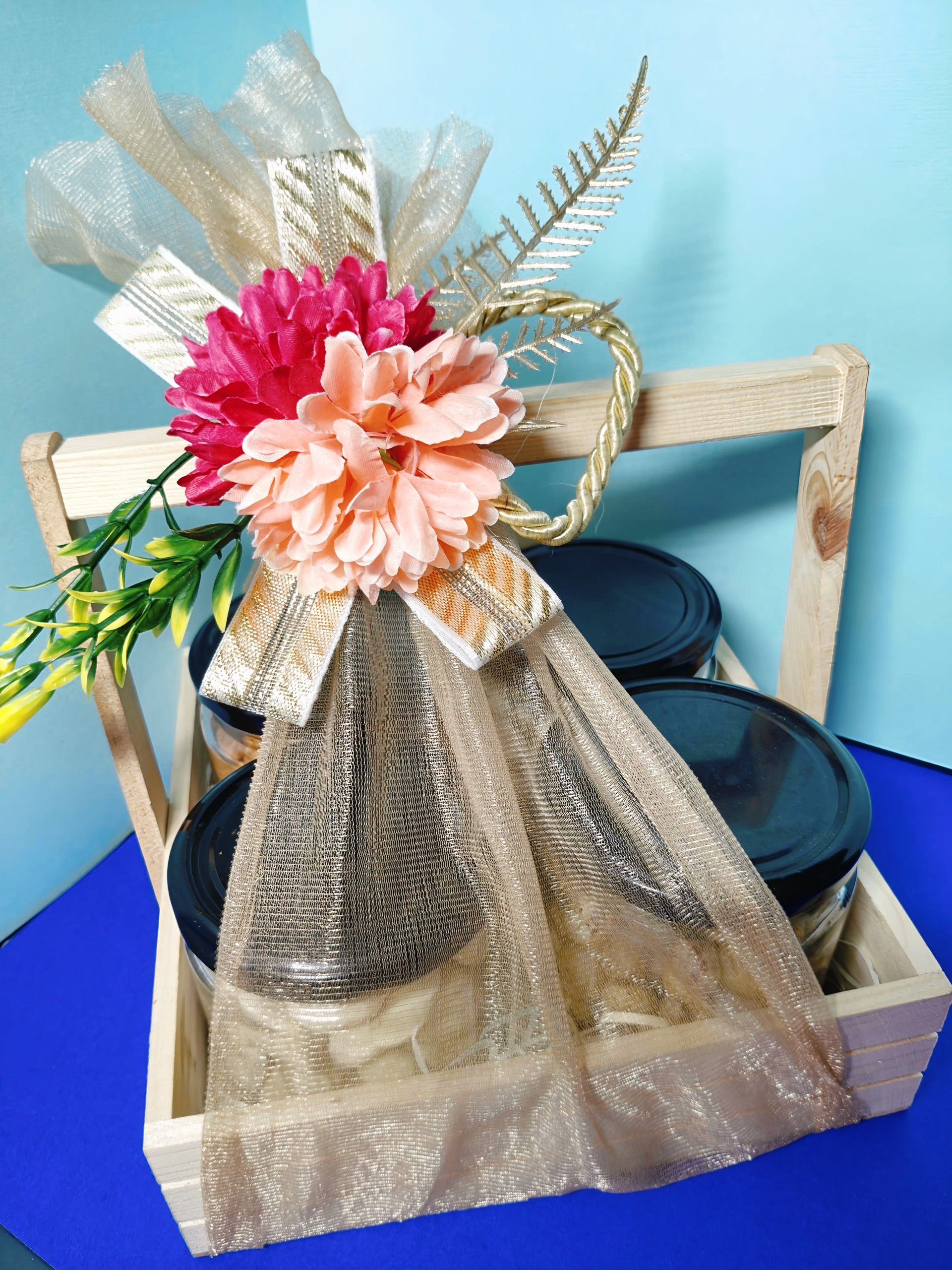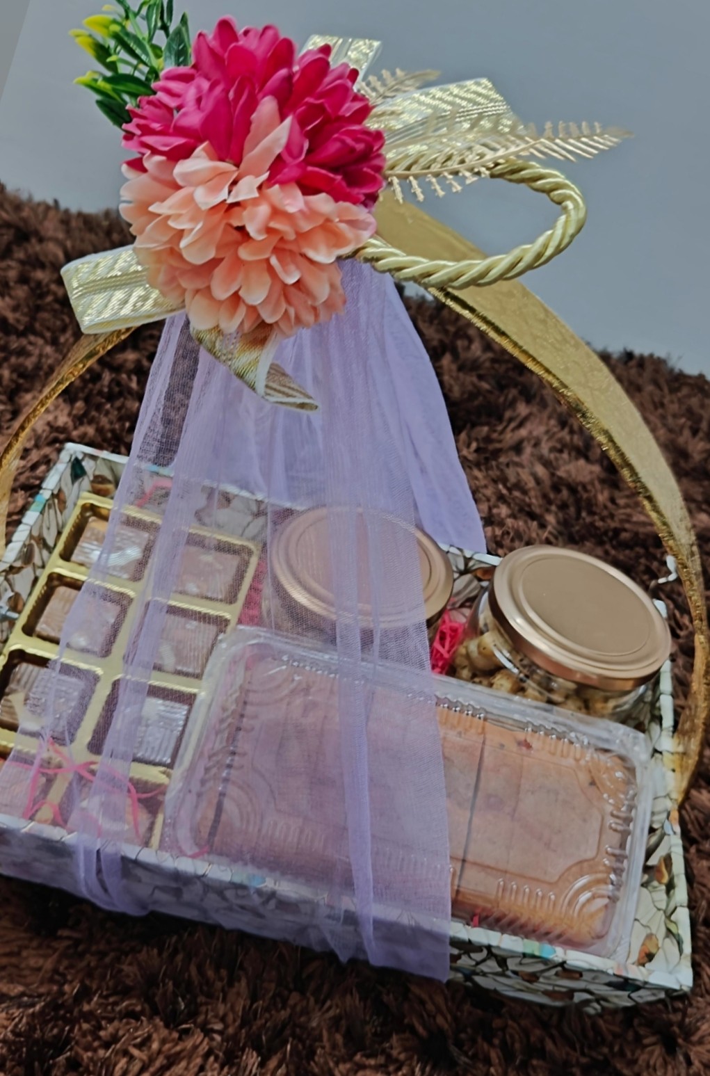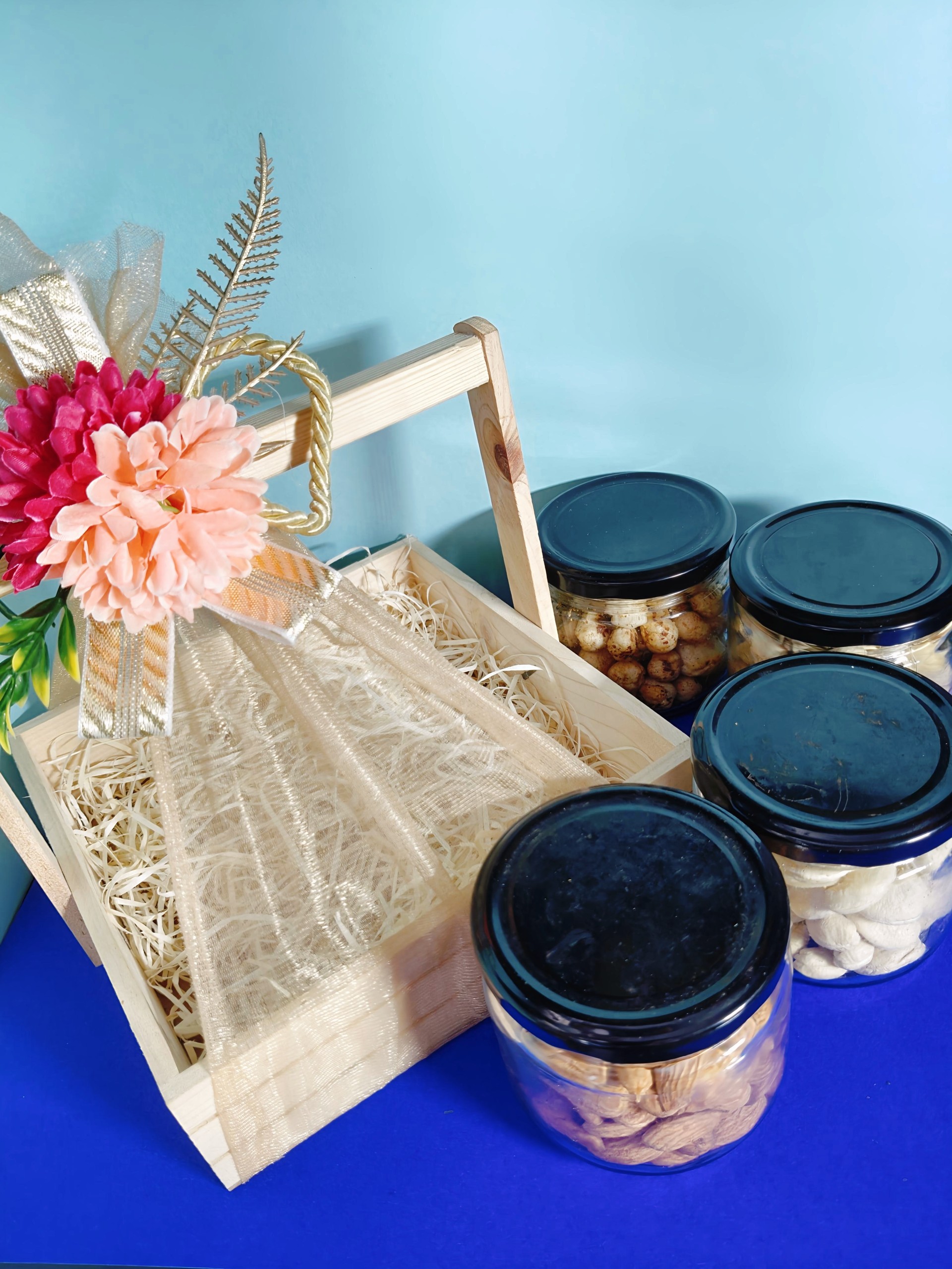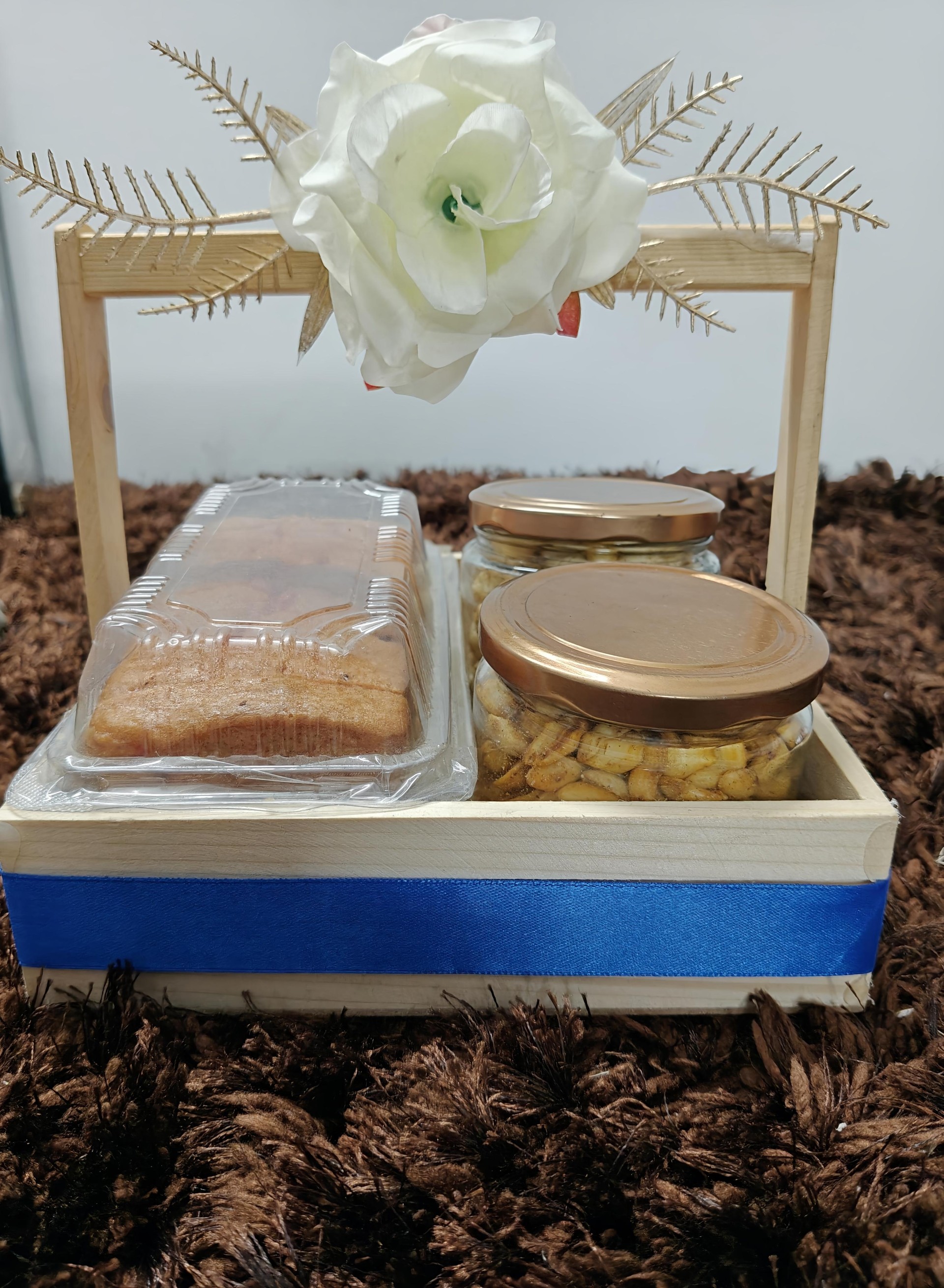 Includes Flavoured Makhana, Flavoured Peanuts, Mixed Seeds, Premium chocolates and Dry Cake (200g)