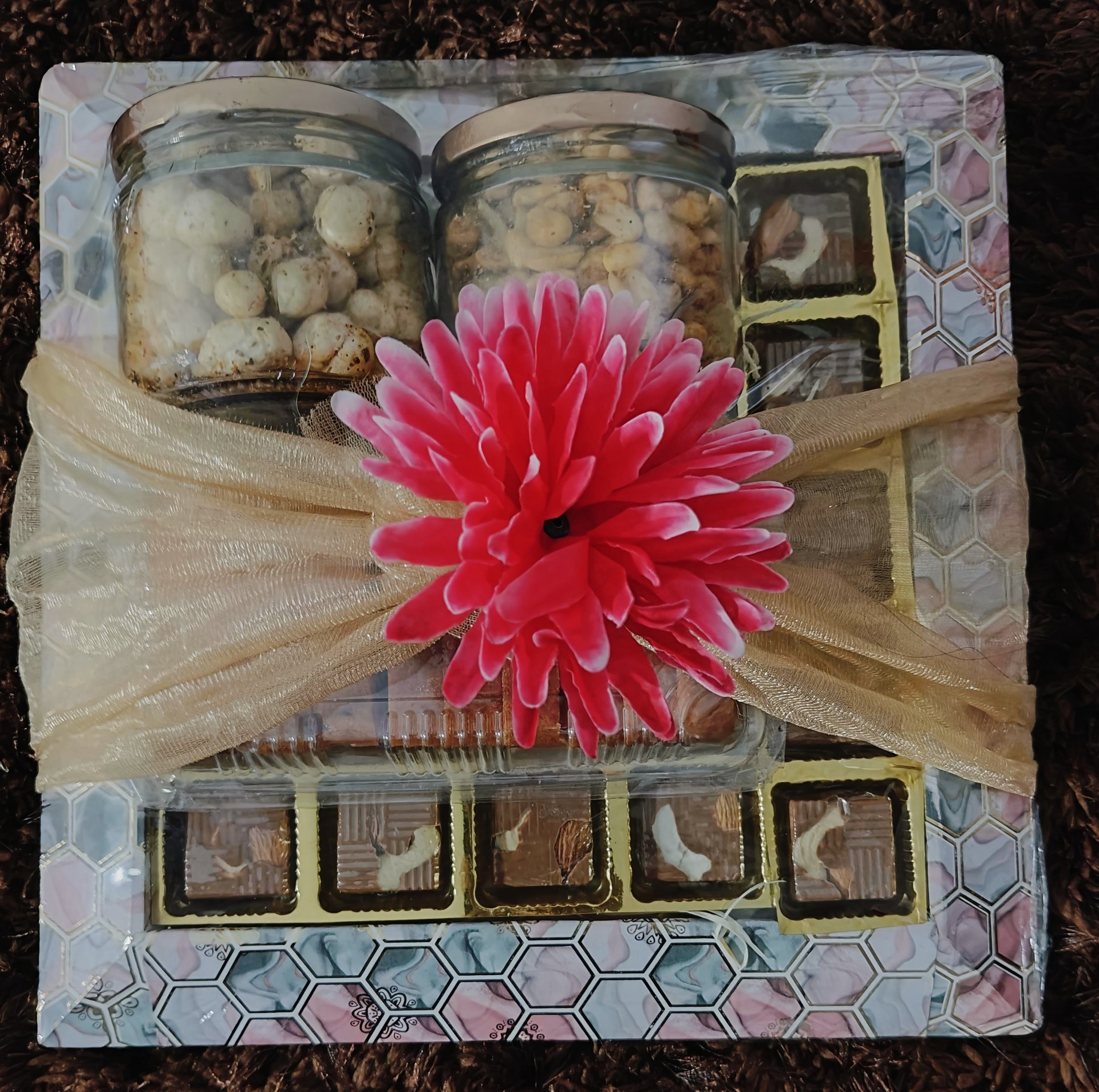 Includes Flavoured Peanuts, Flavoured Makhana and Homemade Chocolates