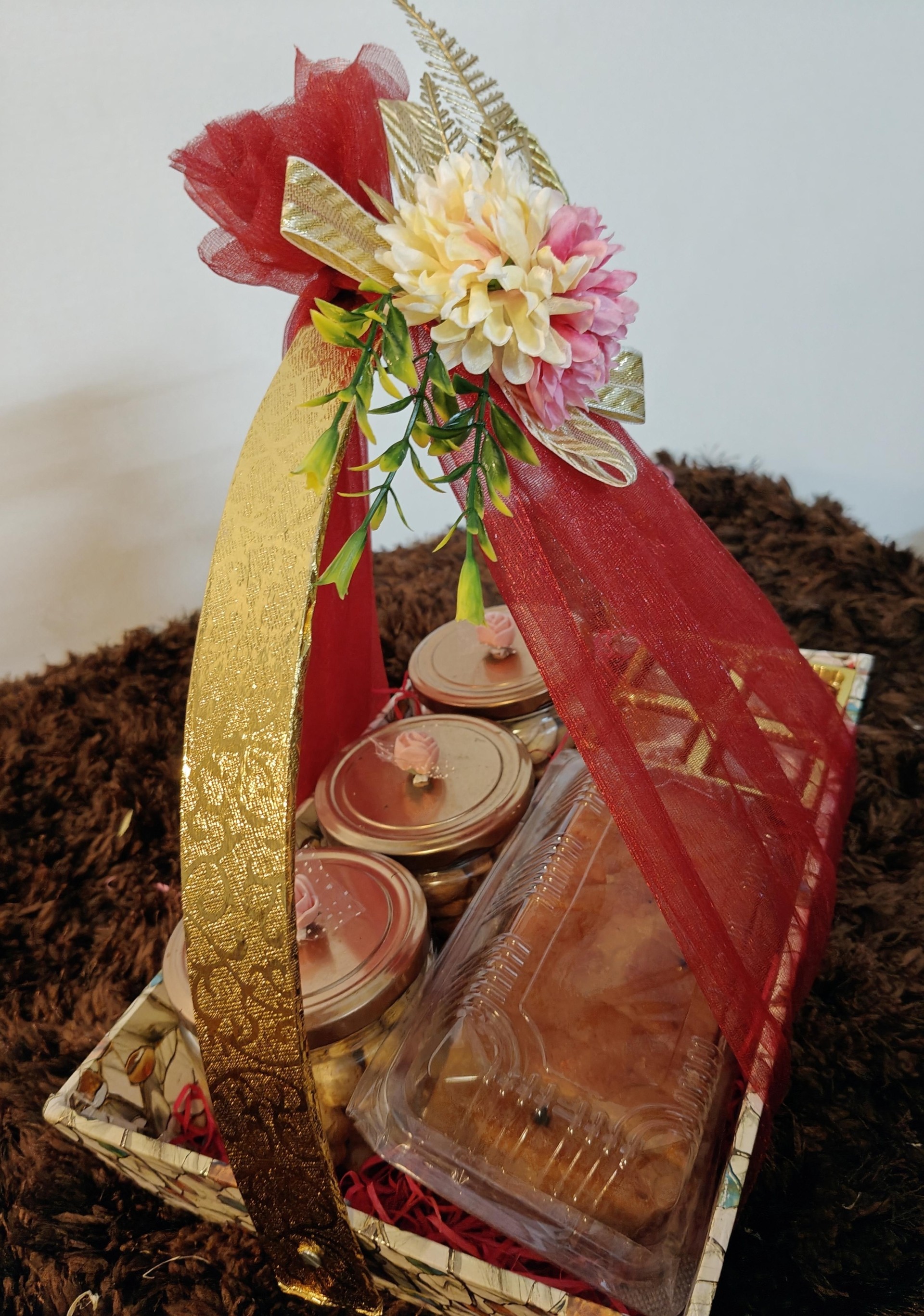 Includes Flavoured Peanuts, Flavoured Makhana, Dry Cake (200g) and Premium Chocolates