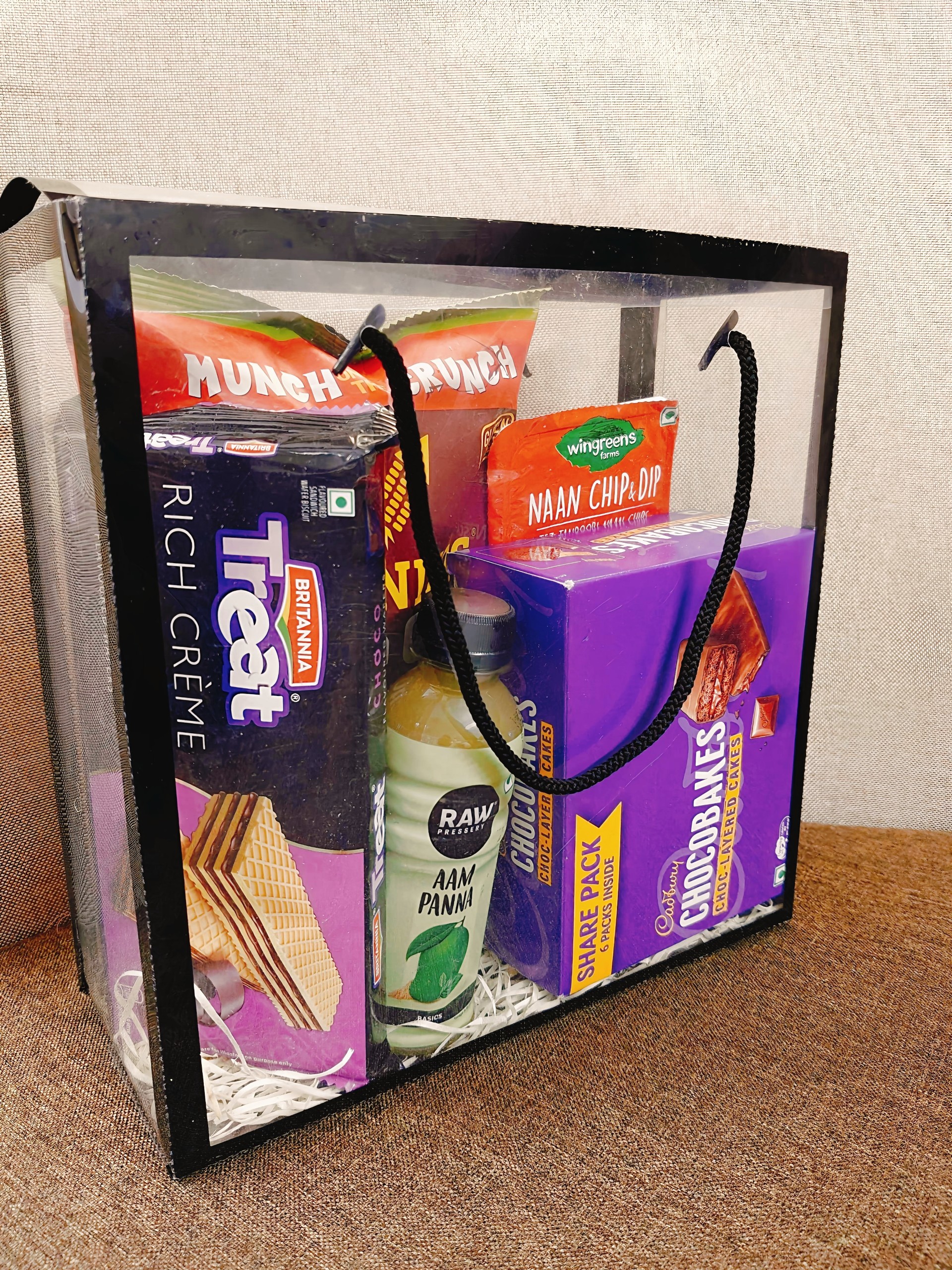 Includes Cornitos, Naan chips and dip, Raw aam panna, Treat wafers, Cadbury Chocobakes